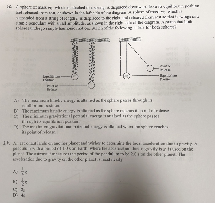 Solved 20 A Sphere Of Mass Mi Which Is Attached To A Spr Chegg Com